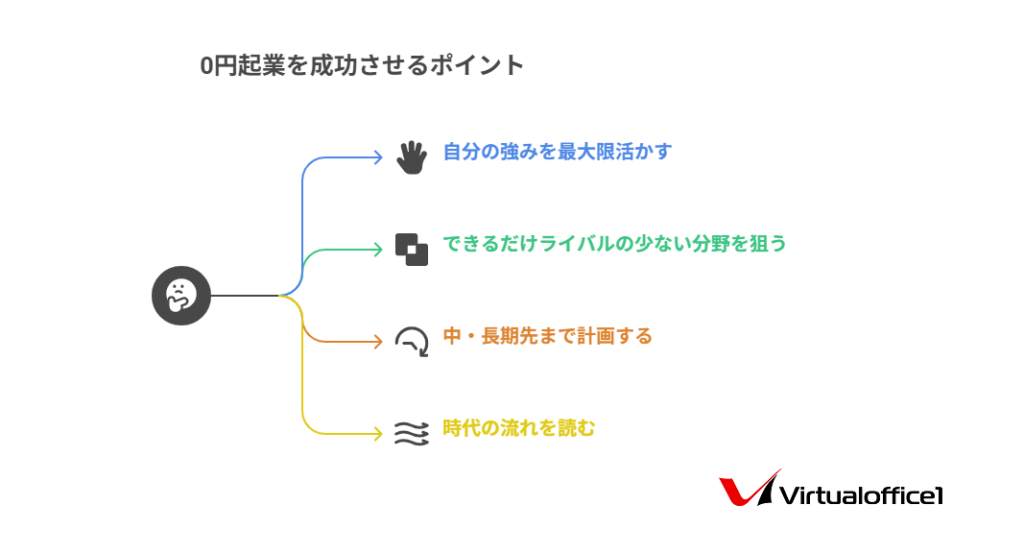 0円起業を成功させるには、次の4つのポイントを押さえておきましょう。