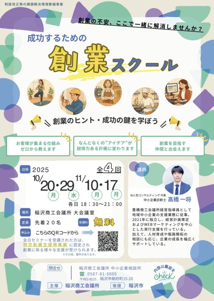 参考:稲沢商工会議所「創業スクールを開催します!」、創業スクールチラシ