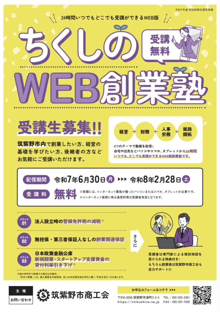 引用:令和7年度 WEB版「ちくしの創業塾」開催のお知らせ – 筑紫野市商工会 | 福岡県、