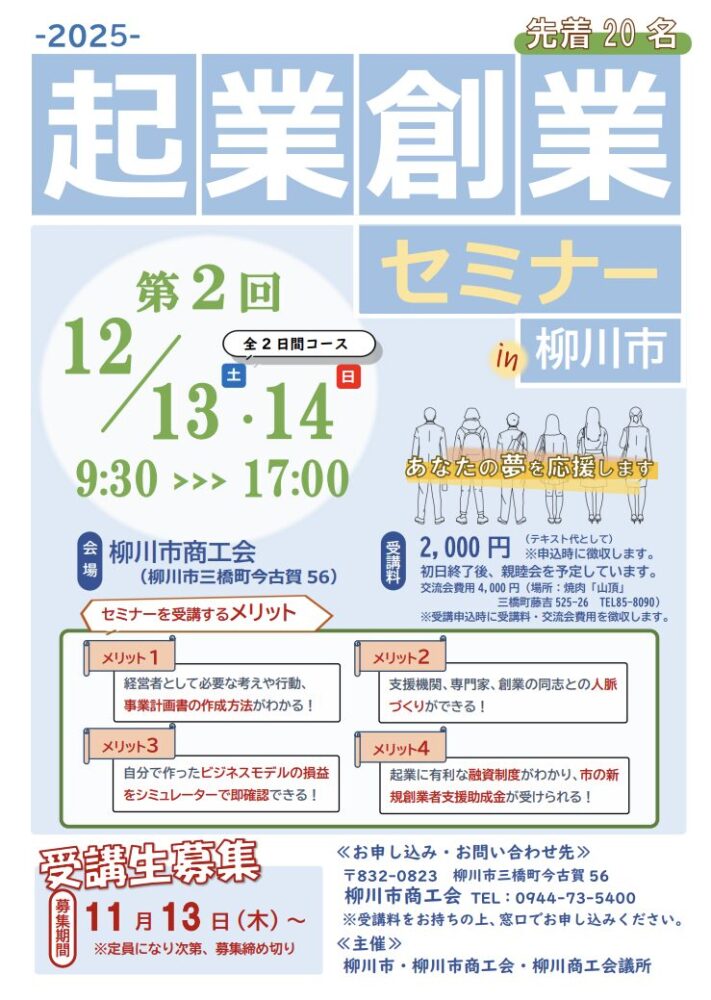 引用:起業・創業セミナー – 柳川市、起業・創業セミナー チラシ