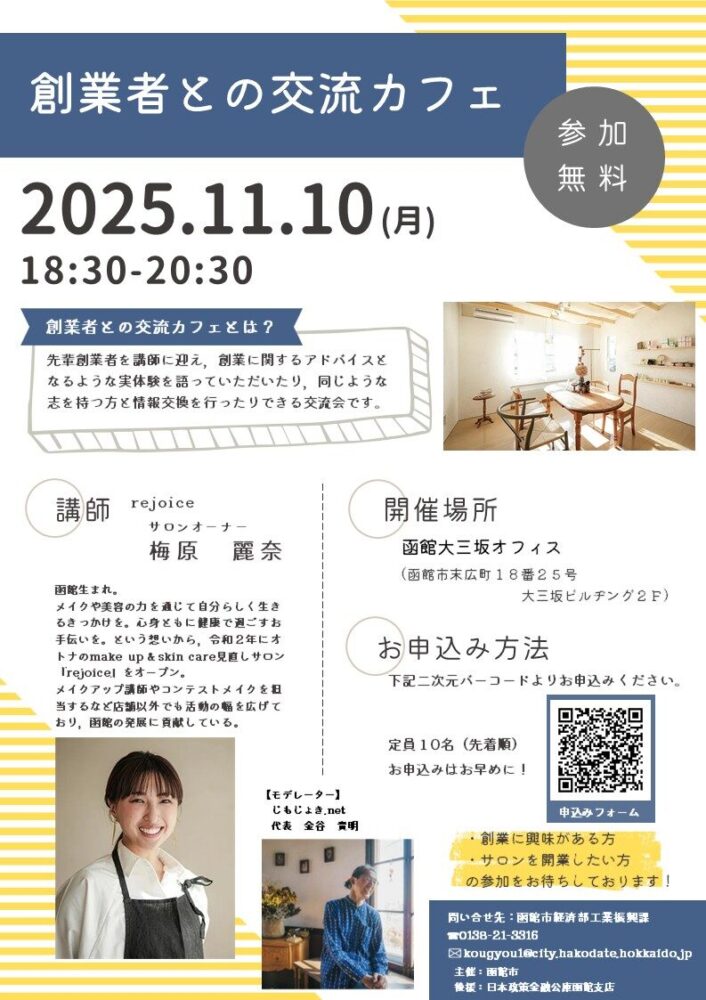 引用:函館市「創業者との交流カフェ」、創業者との交流カフェチラシ