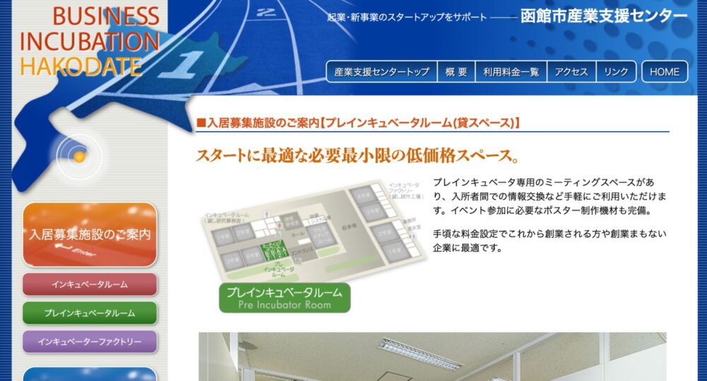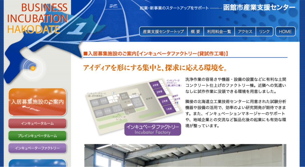 インキュベータルーム・プレインキュベータルーム・インキュベータファクトリー(函館地域産業振興財団(函館市産業支援センター))