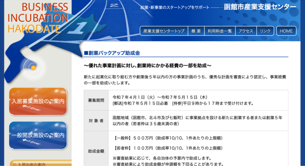 創業バックアップ助成金(函館地域産業振興財団(函館市産業支援センター))