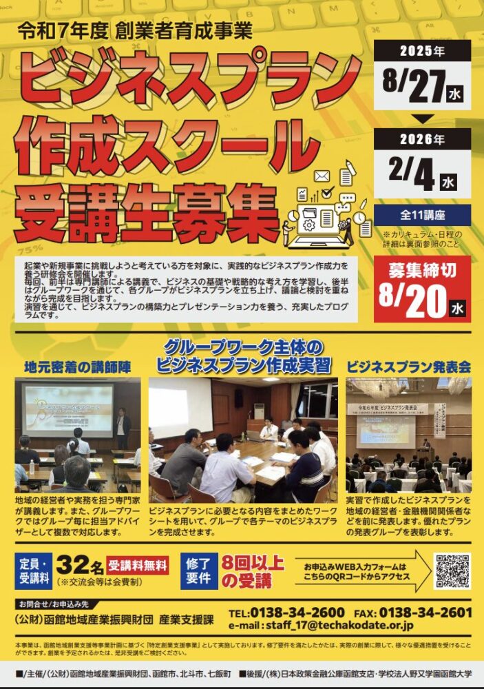 募集中の講座については函館地域産業振興財団HP「創業スキルアップ講座のご案内」で確認できます。