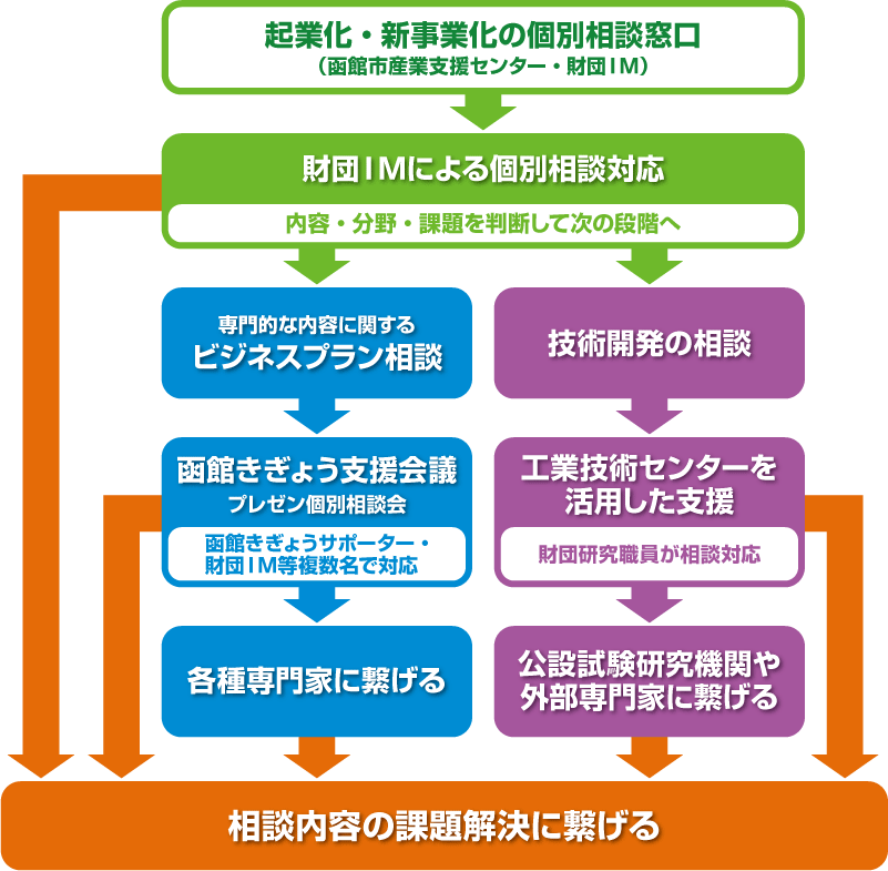 ビジネスプランの相談に対し、函館きぎょう支援会議を経て各種専門家に支援を繋げる活動です。