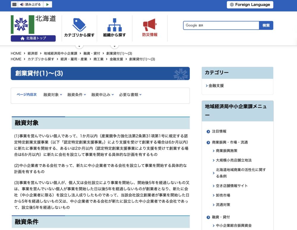 石狩市HP「いしかりビジネス支援情報」で紹介されているとおり、石狩市での創業において北海道の融資制度を利用することができます。