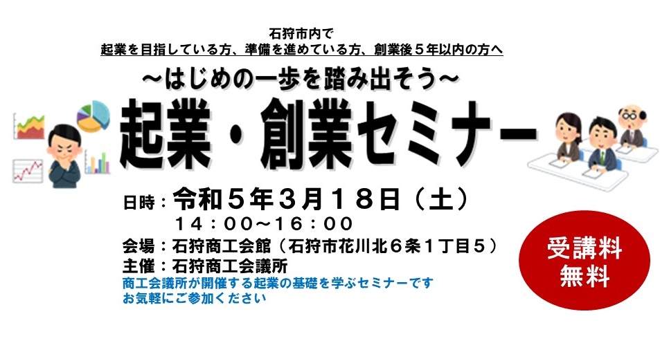出典:はじめの一歩を踏み出そう『起業・創業セミナー』のご案内|石狩商工会議所