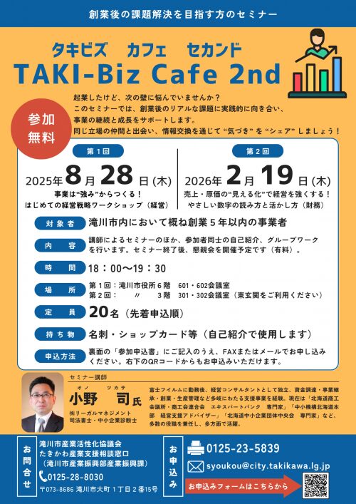 参考:滝川市産業活性化協議会 TAKI-Biz Cafeを開催いたします|滝川市
