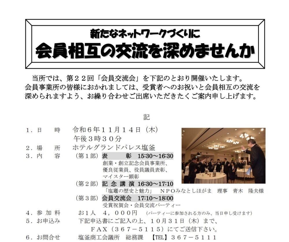 塩竈市が行っている交流会はありませんが、塩釜商工会議所「会員交流会」があります。